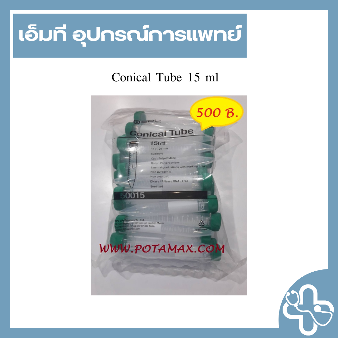 Conical Tube ขนาด 15 ml- 17x120 mm.- 1 แพค บรรจุ 50 หลอด- ลักษณะ : test tube แบบกรวย มีฝาปิด- Sterilized- Non-pyrogenic- Non cytotoxic- ผลิตจากประเทศเกาหลี